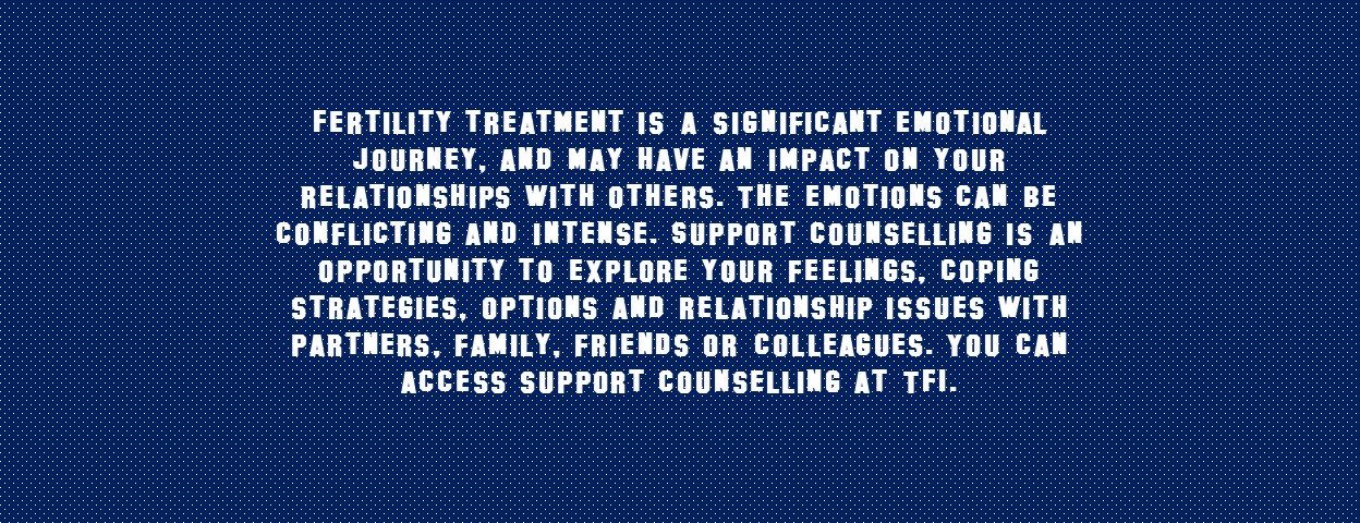 Provide support counselling (e. g. grief work after a miscarriage) and short-term crisis counselling to patients after a failed IVF or ICSI trial and severe psychological problems (e.g., anxiety, depression, marital/sexual problems).